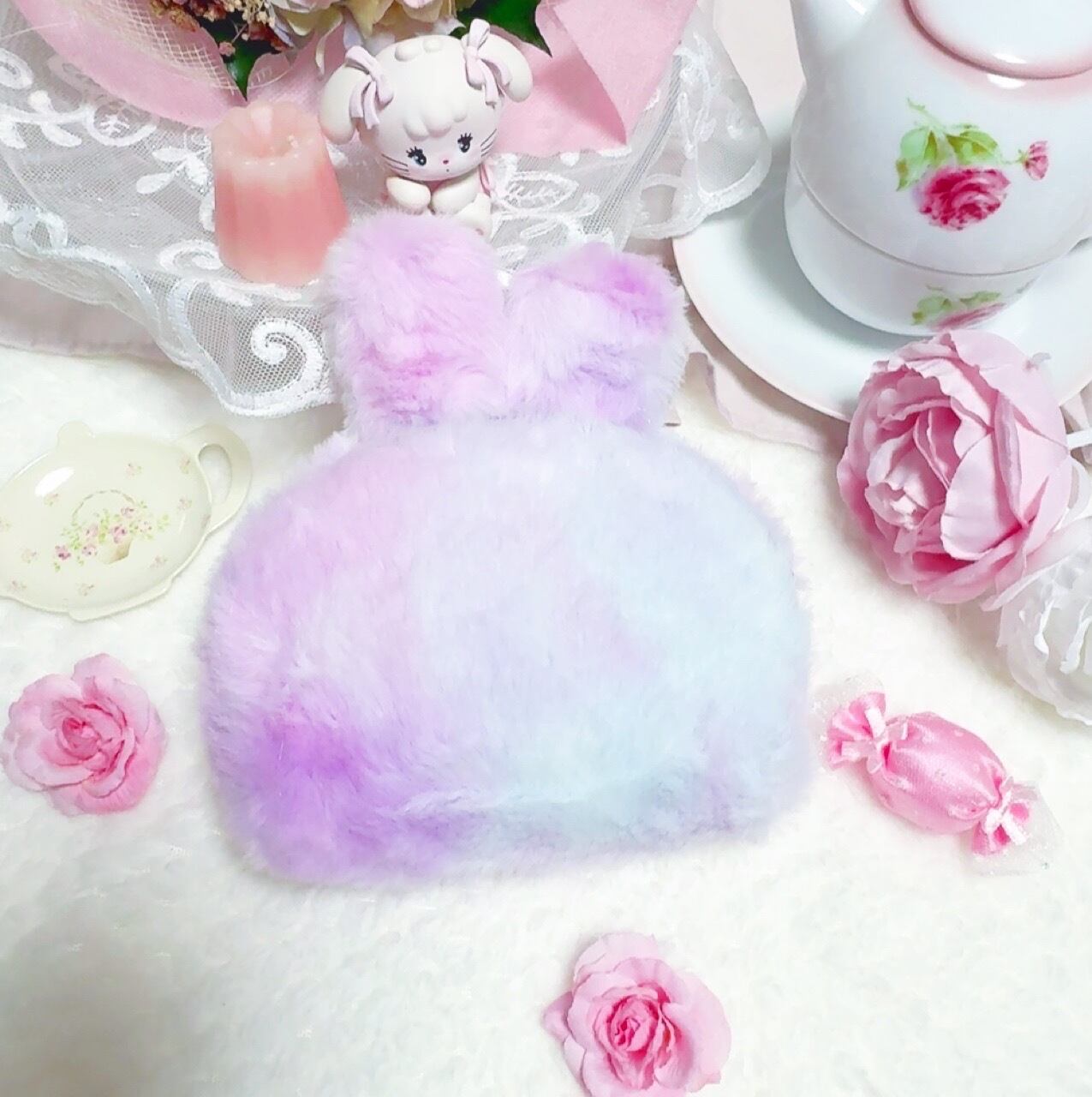 レトロな女の子 うさぎのふわふわファーポーチ レインボー パープル ラベンダー ウサギ リボン バラ 薔薇 rose 星 スター ピンク レース エコファー ロマンズアイ ゆめかわいい
