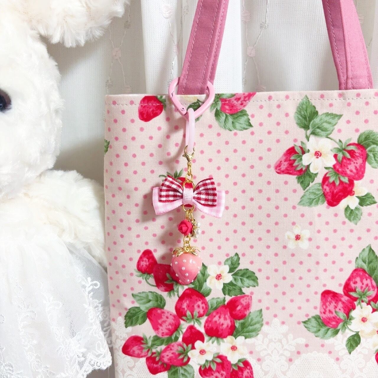 いちごが可愛い ちょっとそこまでバッグ トートバッグ サブバッグ ピンク 目印チャーム付き 苺 イチゴ