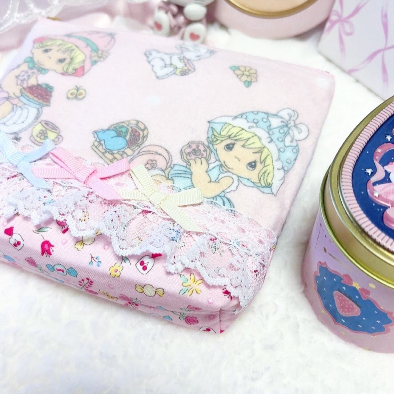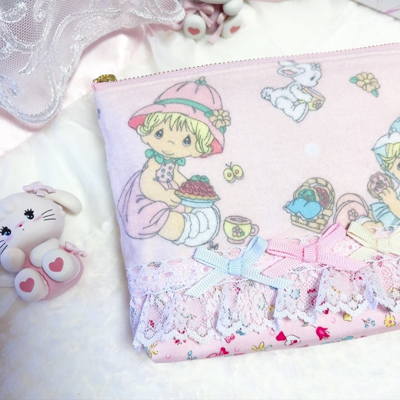 プレシャスモーメントの生地を使用して可愛いポーチを制作しました。