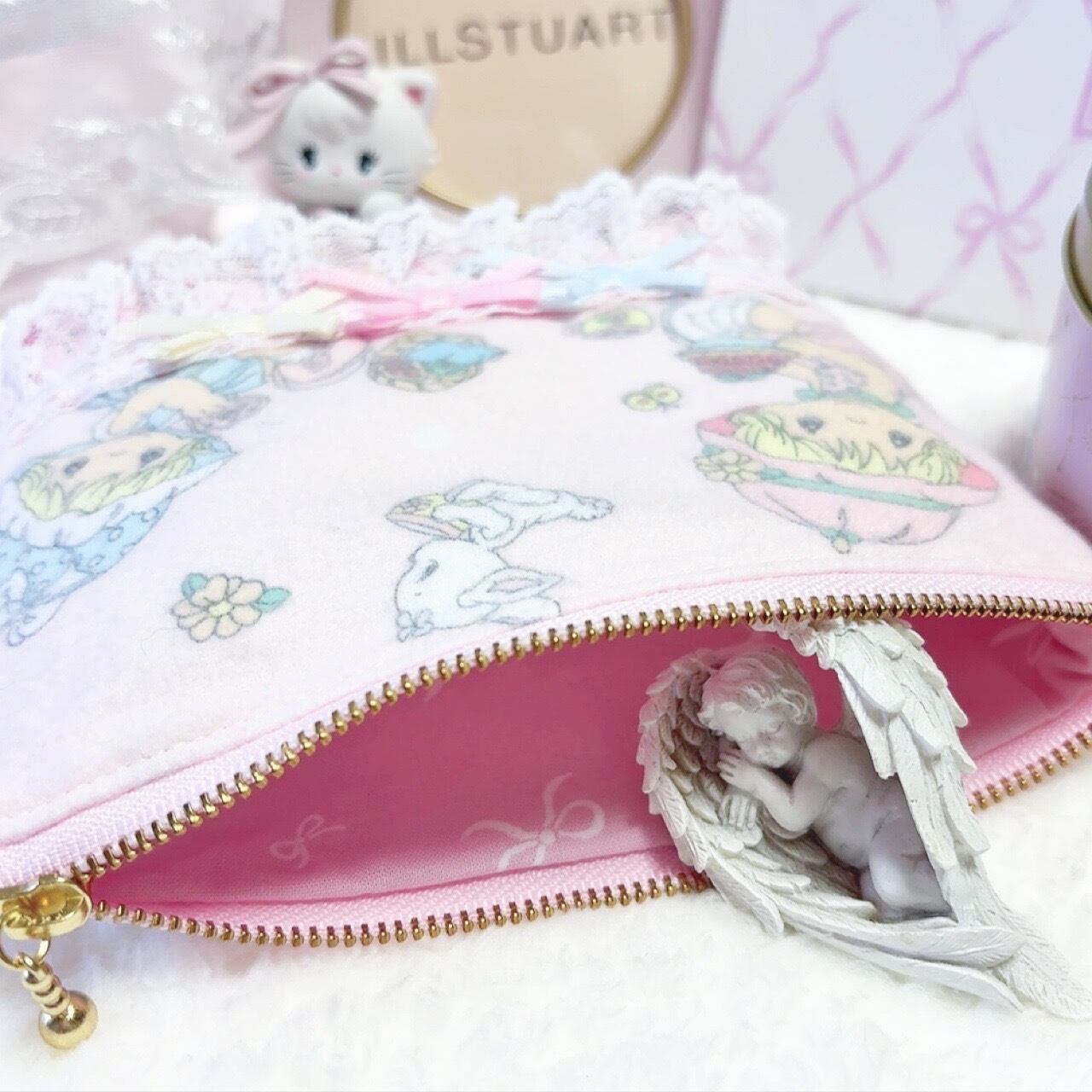 コピー:プレシャスモーメント ポーチ パステルカラー ハート レース リボン ゆめかわ ピンク ベビーピンク キャンディ 薔薇